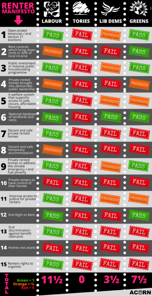 Renters’ Vote was an initiative led by ACORN—the union for the community. For the past six years, we’ve been organising renters across the UK.