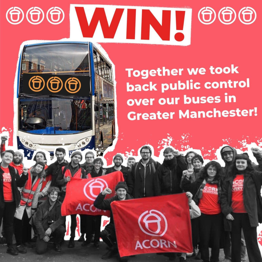 ACORN’s campaign saw actions including letter-writing, social media call-outs, phonebanking, and in-person campaigning actions which helped to secure over 500 member responses to a consultation regarding the future of the city’s buses – making clear that the public were overwhelmingly in favour of bringing buses back into public control. Despite robust opposition from those seeking to profit from provision of public transport, ACORN was amongst the majority urging Greater Manchester Combined Authorities to bring buses under public control.