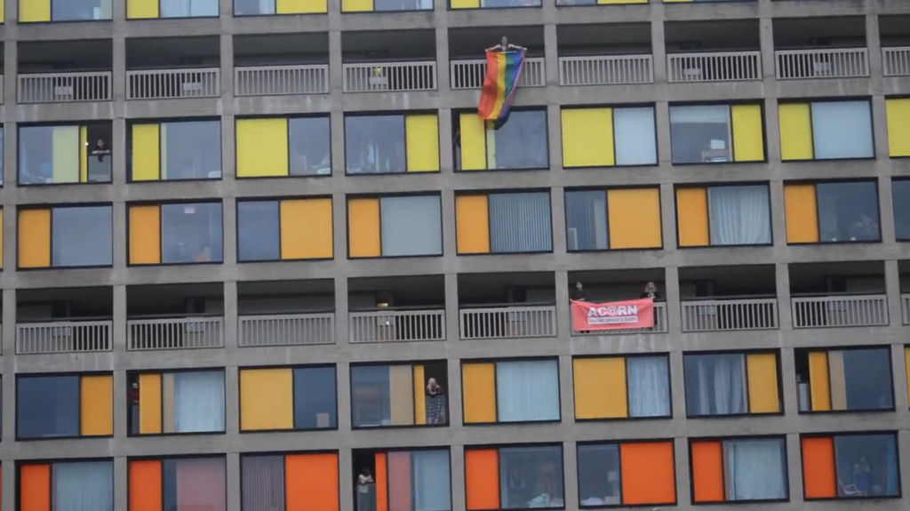 ACORN united the diversity of the new estate—social tenants, private renters and homeowners alike—getting hundreds of residents to sign a petition and mobilising them onto their balconies to bash pots and pans and make noise against rip-off bills. A show of unity in a time of isolation.